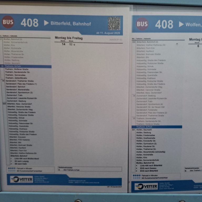 Vor dem Gelände befindet sich eine Bushaltestelle.